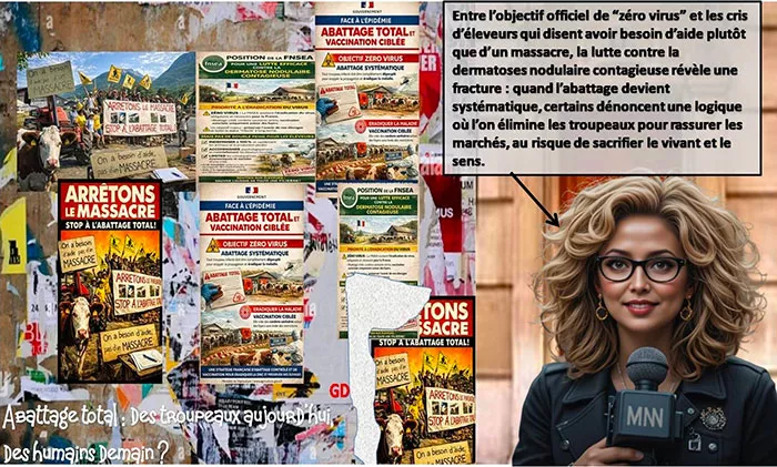 La stratégie française d’abattage total des troupeaux bovins infectés par la Dermatose Nodulaire Contagieuse (DNC) est l’objet d’un débat houleux. Elle repose sur des impératifs légaux et sanitaires, mais elle est vivement critiquée pour ses conséquences sur le terrain.