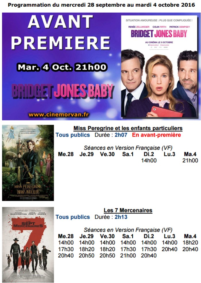 A l'affiche, cette semaine (du 21 au 27 septembre 2016)