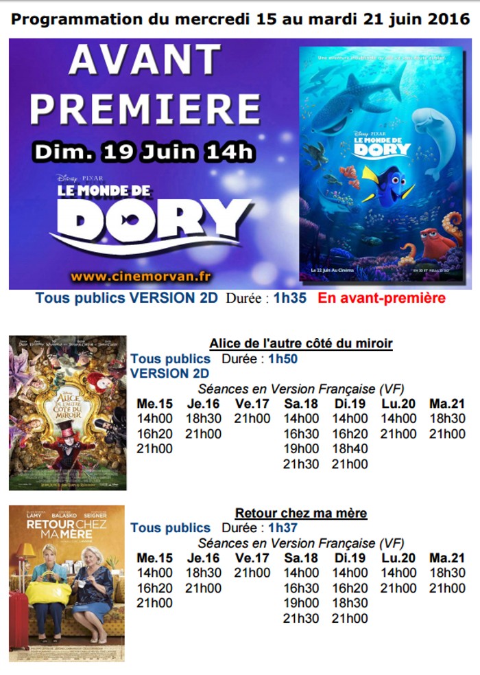 A l'affiche, cette semaine (du 15 au 21 juin 2016)