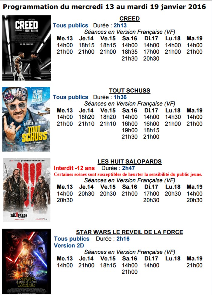 A l'affiche, cette semaine (du 13 au 19 janvier 2016)