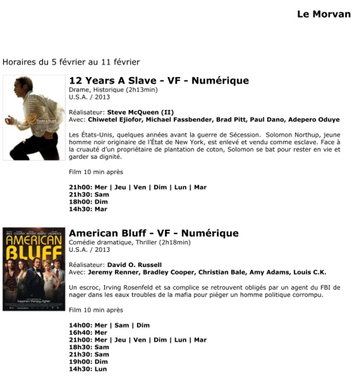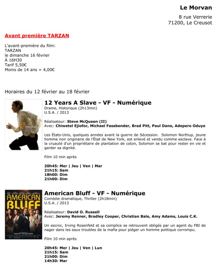 A l'affiche, cette semaine (du 12 au 18 février 2014)