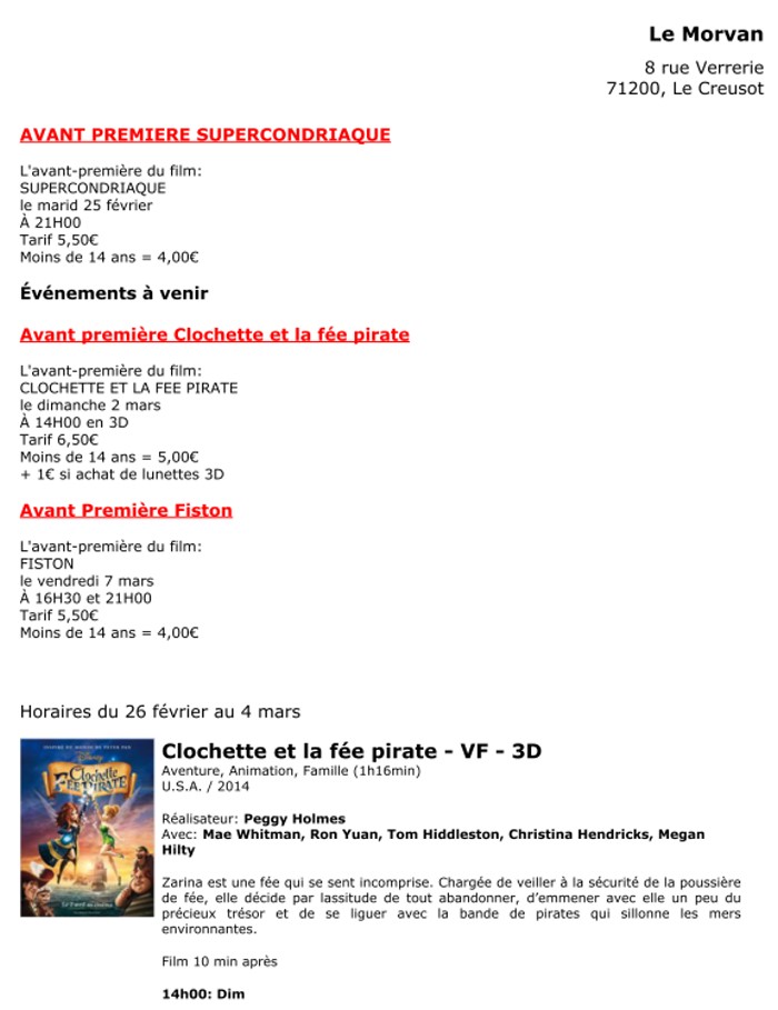 A l'affiche, cette semaine (du 19 au 25 février 2014)