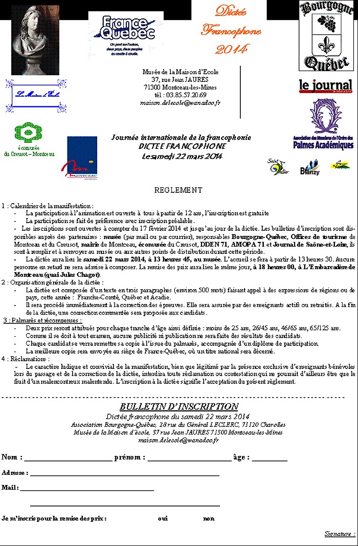 Neuvième Dictée Francophone région Bourgogne, le 22 mars 2014