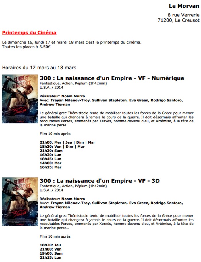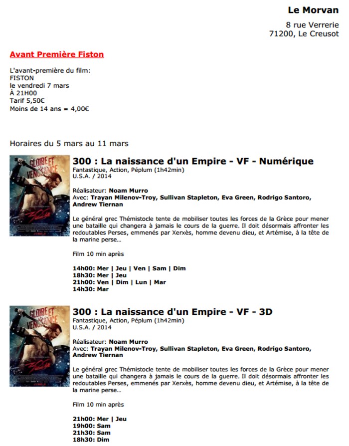 A l'affiche, cette semaine (du 12 au 18 mars 2014)