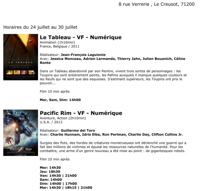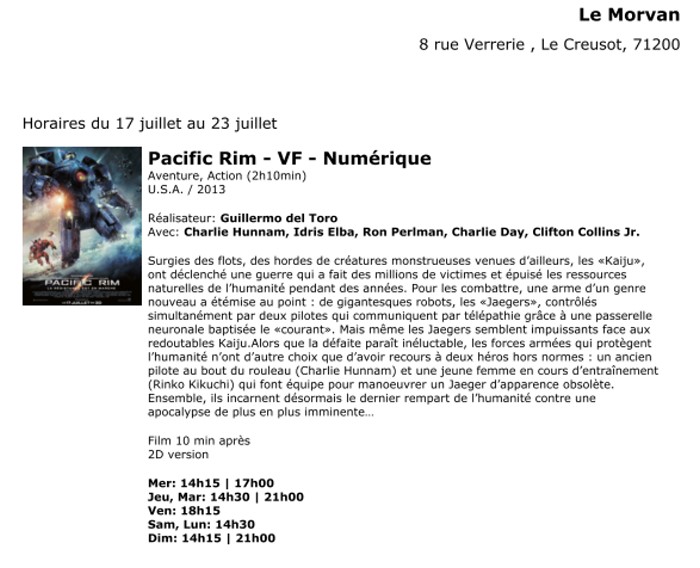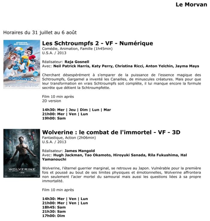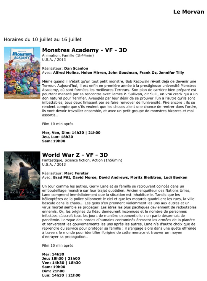 A l'affiche, cette semaine (du 03 au 09 juillet 2013)