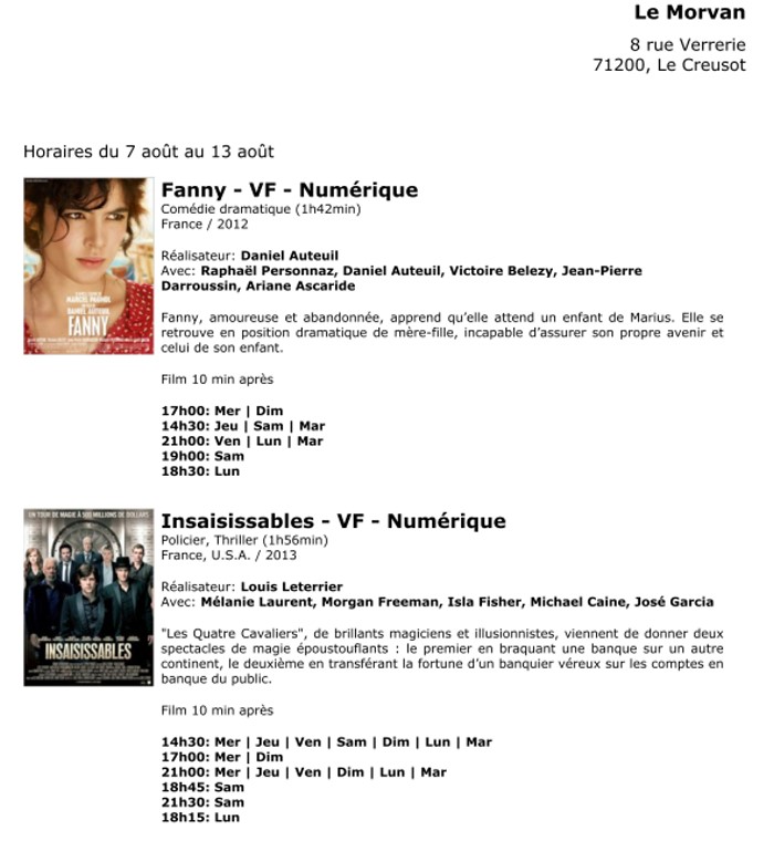 A l'affiche, cette semaine (du 07 au 13 août 2013)