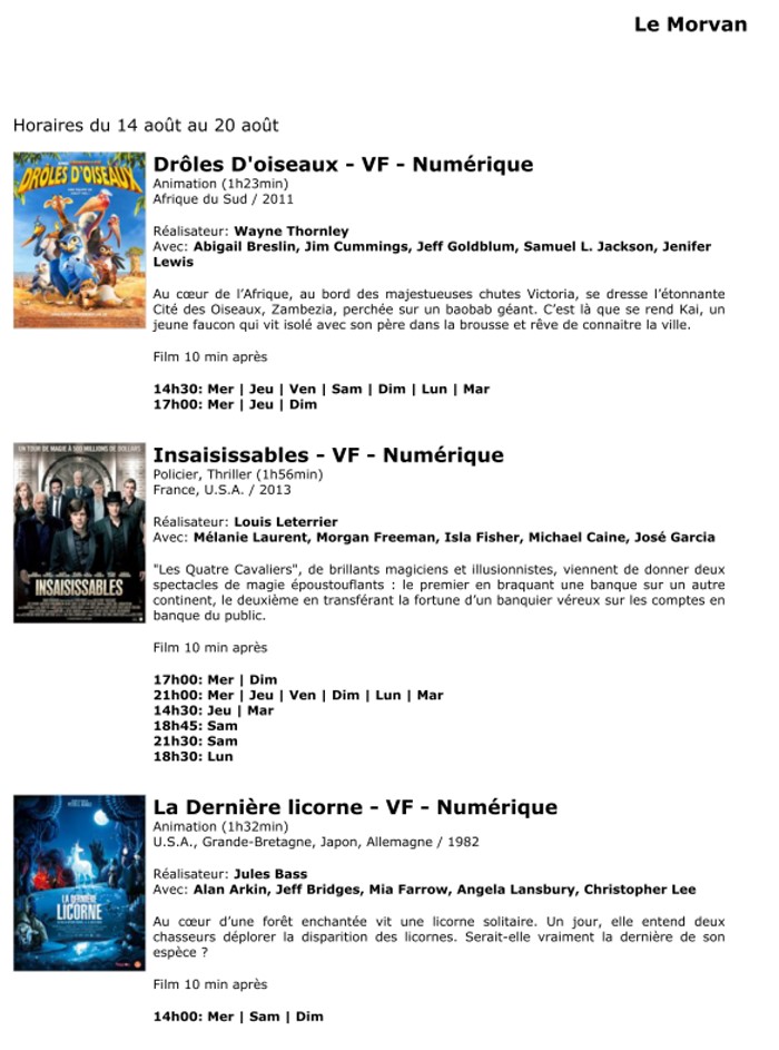 A l'affiche, cette semaine (du 14 au 20 août 2013)