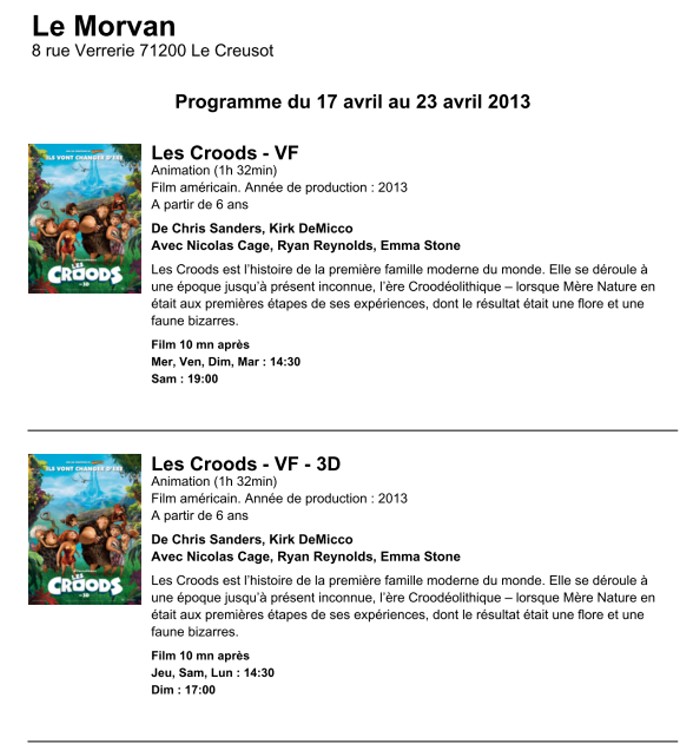 A l'affiche, cette semaine (du 17 au 23 avril 2013)