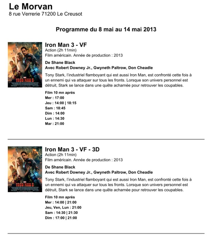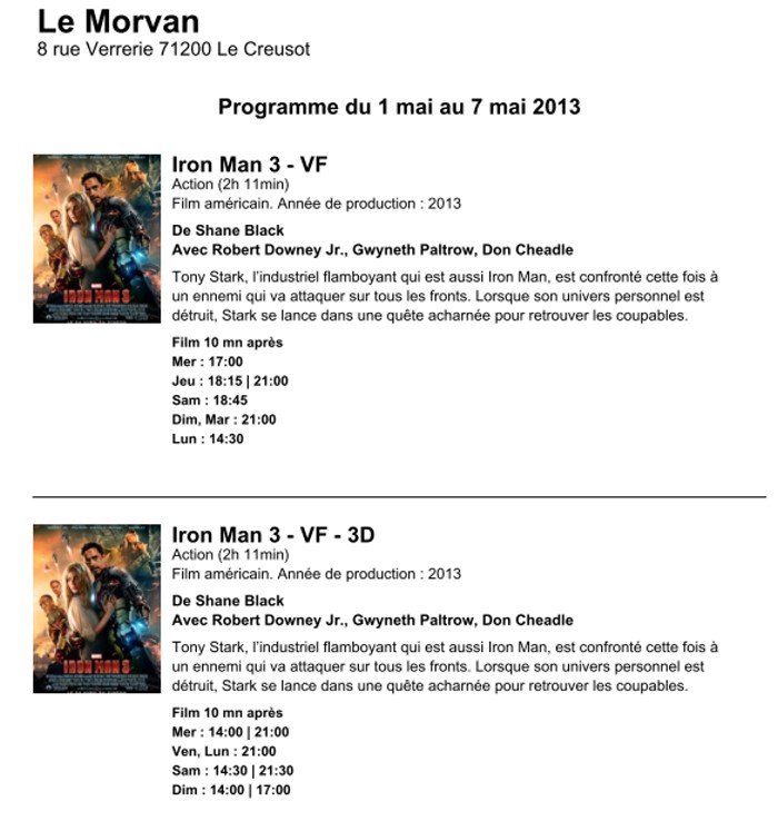 A l'affiche, cette semaine (du 1er au 7 mai 2013)