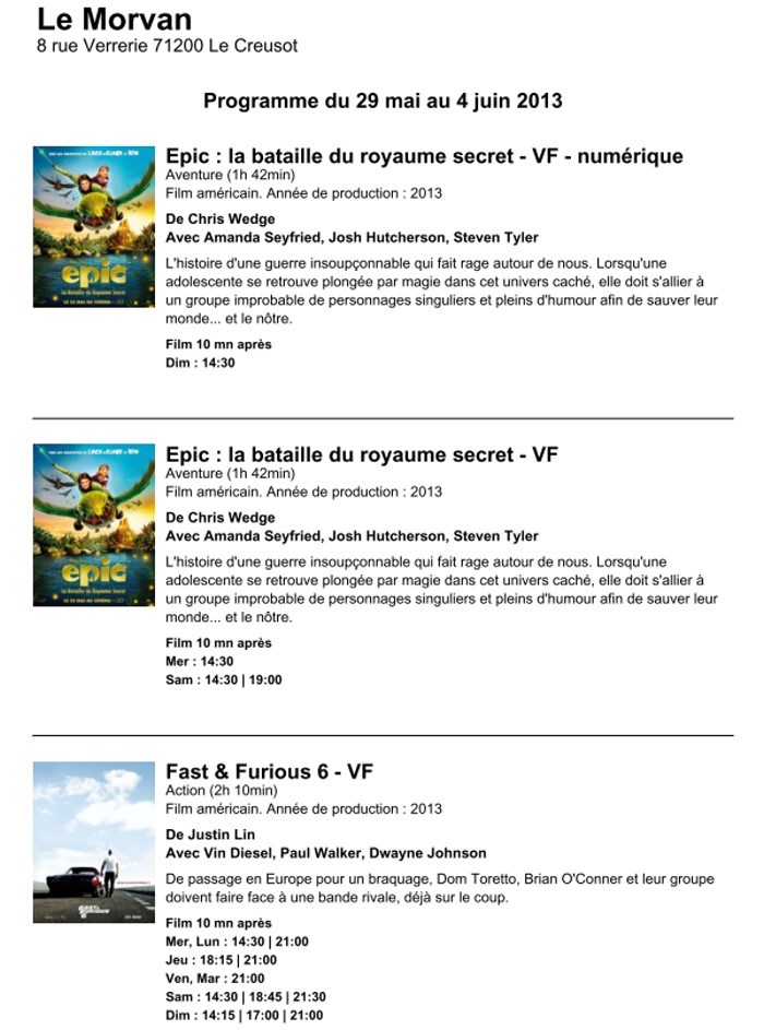A l'affiche, cette semaine (du 29 mai au 4 juin 2013)