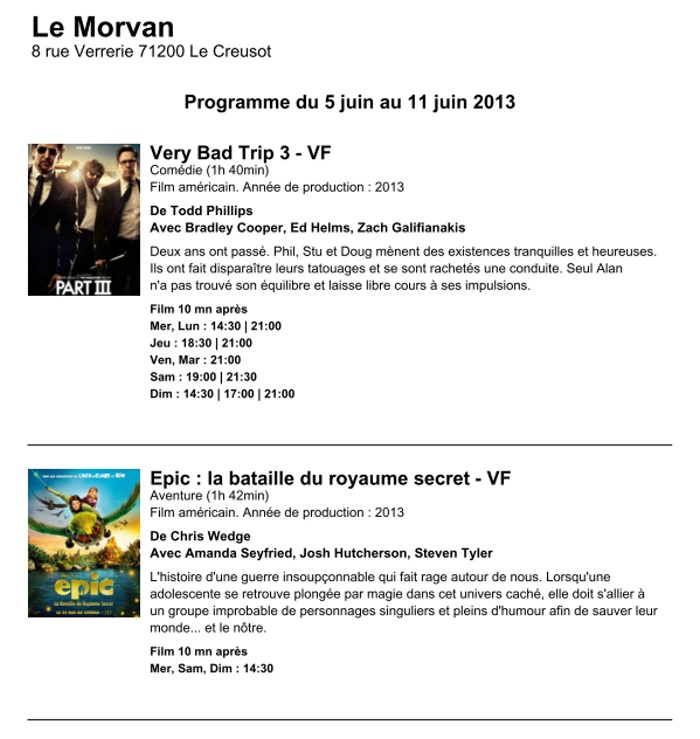 A l'affiche, cette semaine (du 12 au 18 juin 2013)