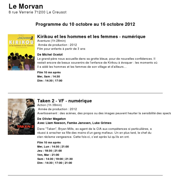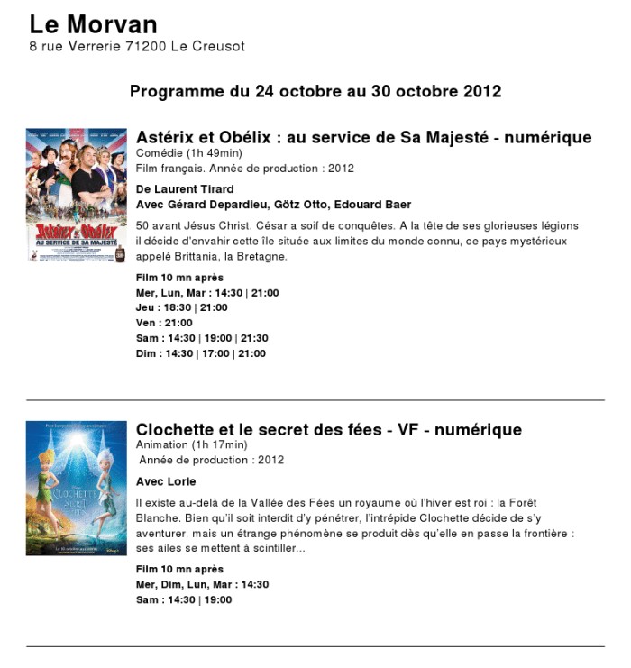 A l'affiche, cette semaine (du 24 au 30 octobre 2012)