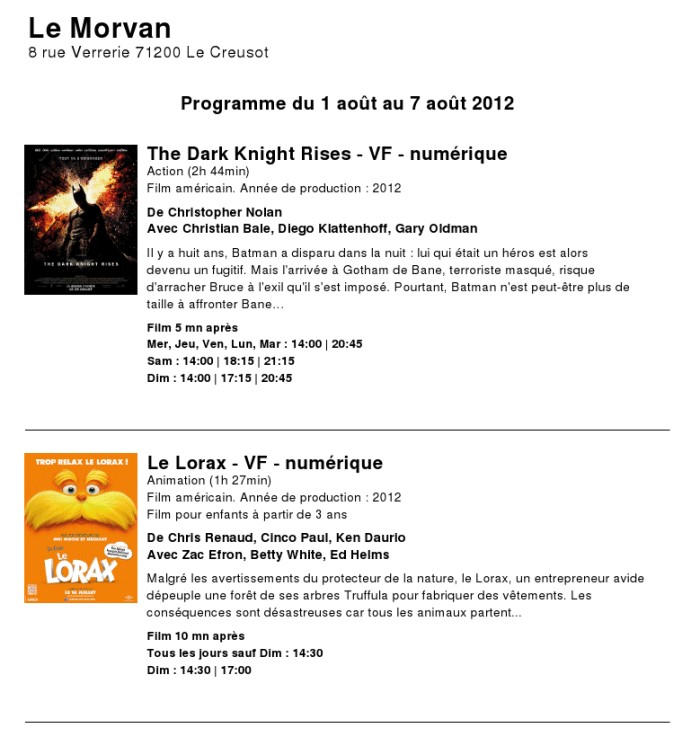 A l'affiche, cette semaine (du 1er au 7 août 2012)