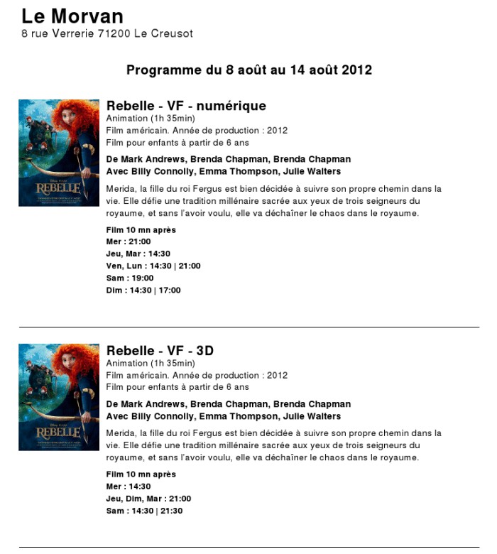 A l'affiche, cette semaine (du 15 au 21 août 2012)