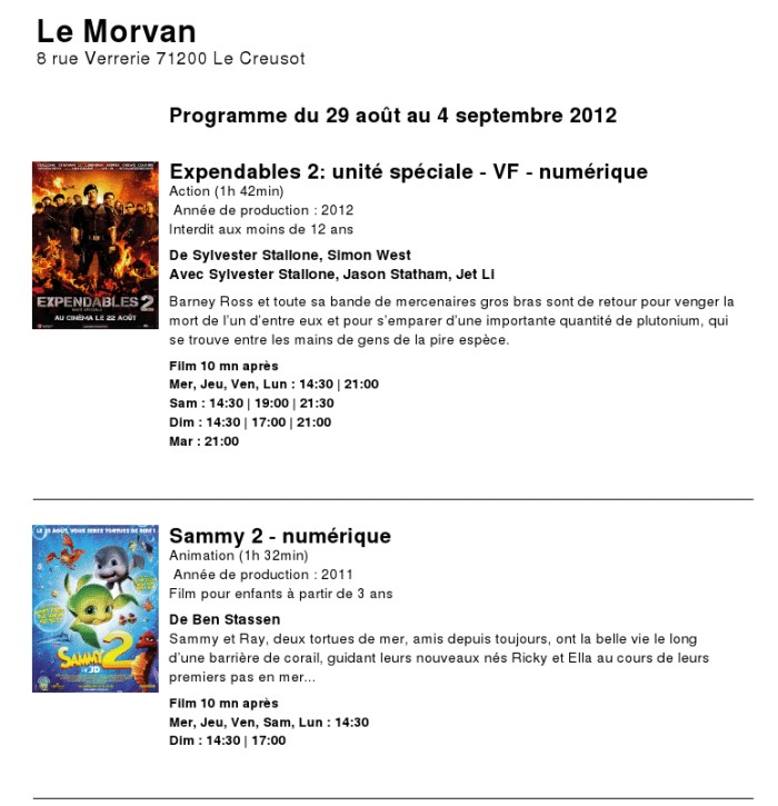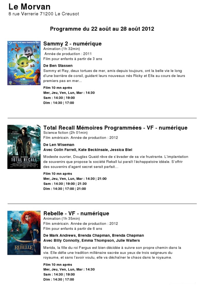 A l'affiche, cette semaine (du 22 au 28 août 2012)