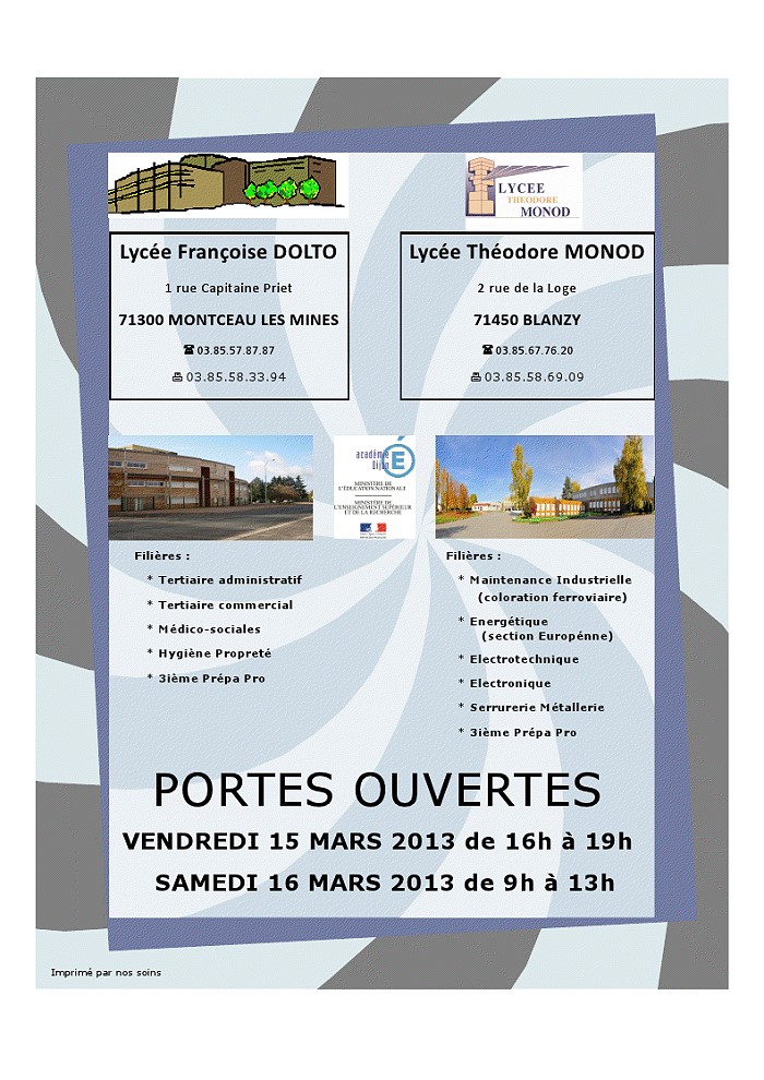 Portes ouvertes les vendredi 15 et samedi 16 mars 2013