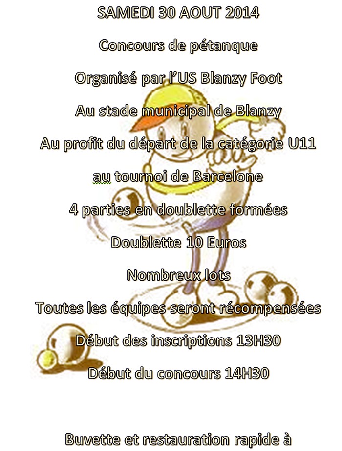 Concours de pétanque, le samedi 30 août 2014 ! Pour une bonne cause...