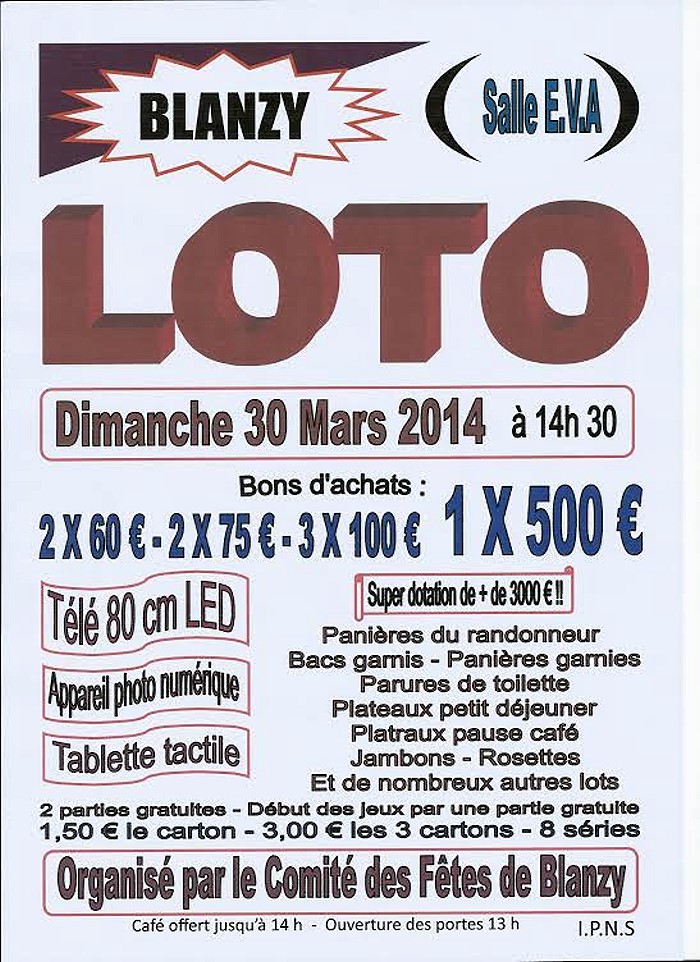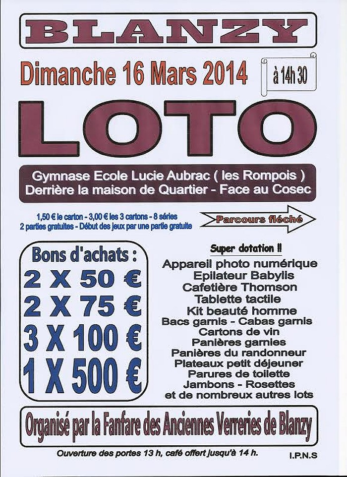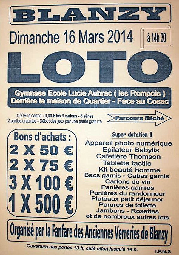 Grand loto, le dimanche 9 mars 2014