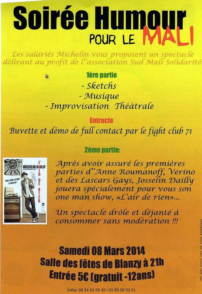 Soirée humour au profit du Mli, le samedi 8 mars 2014