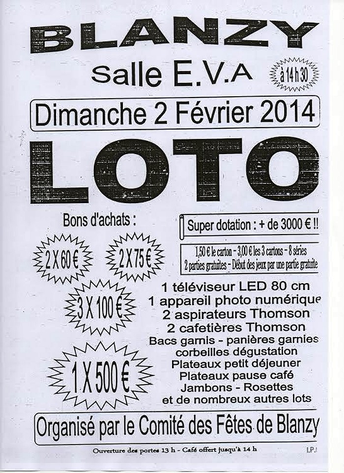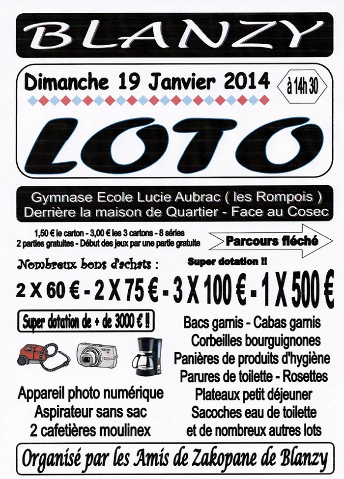 Plus de 3 000 euros de lots au loto du 2 février 2014
