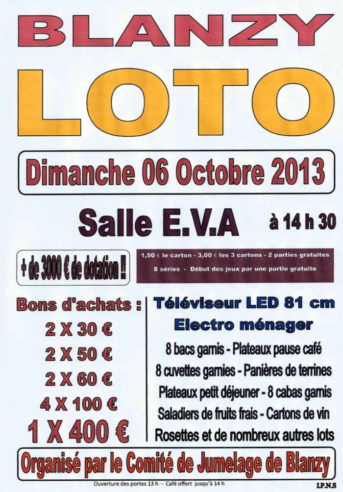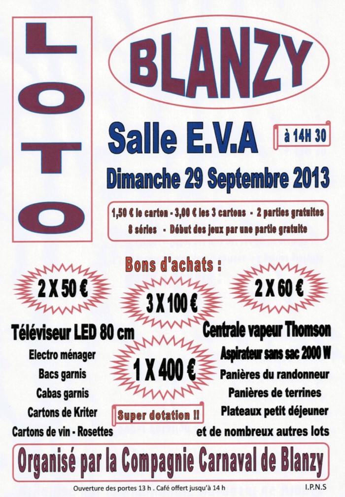 Loto, Ce dimanche 22 septembre 2013, à Blanzy