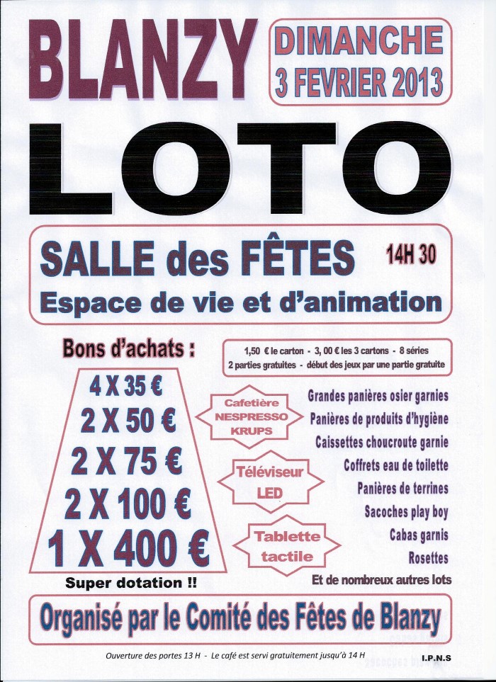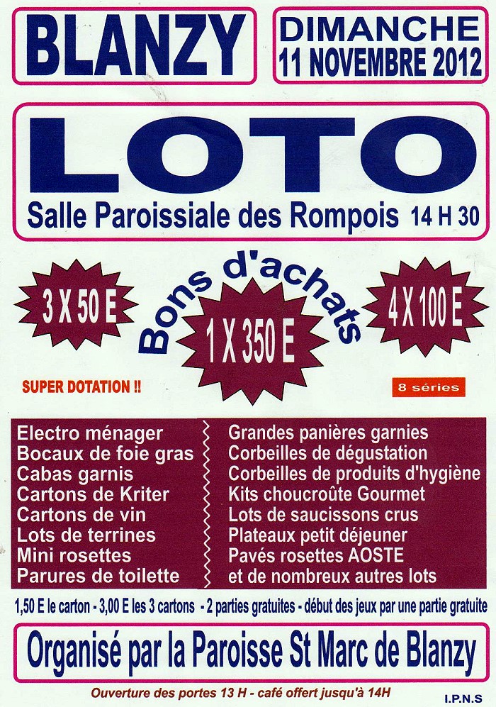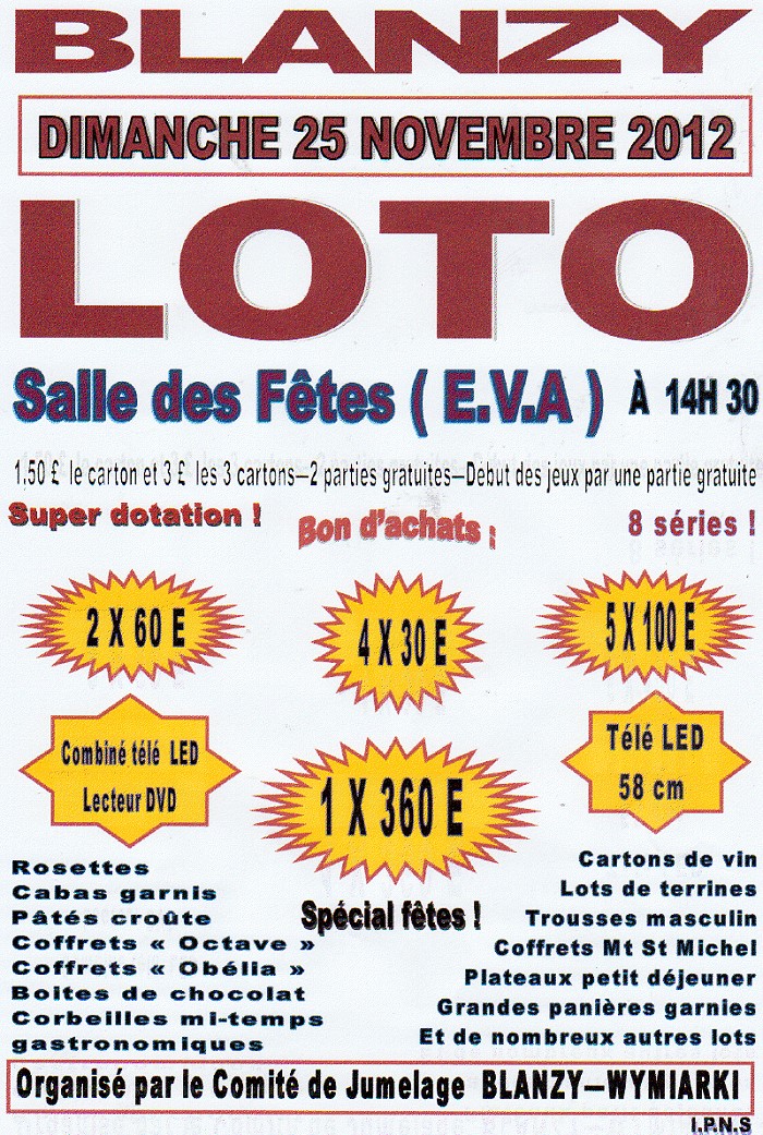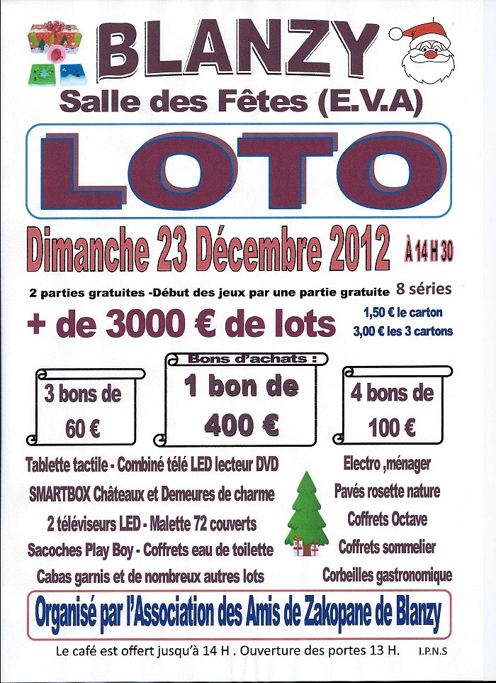 Loto le dimanche 2 décembre 2012 au profit du téléthon
