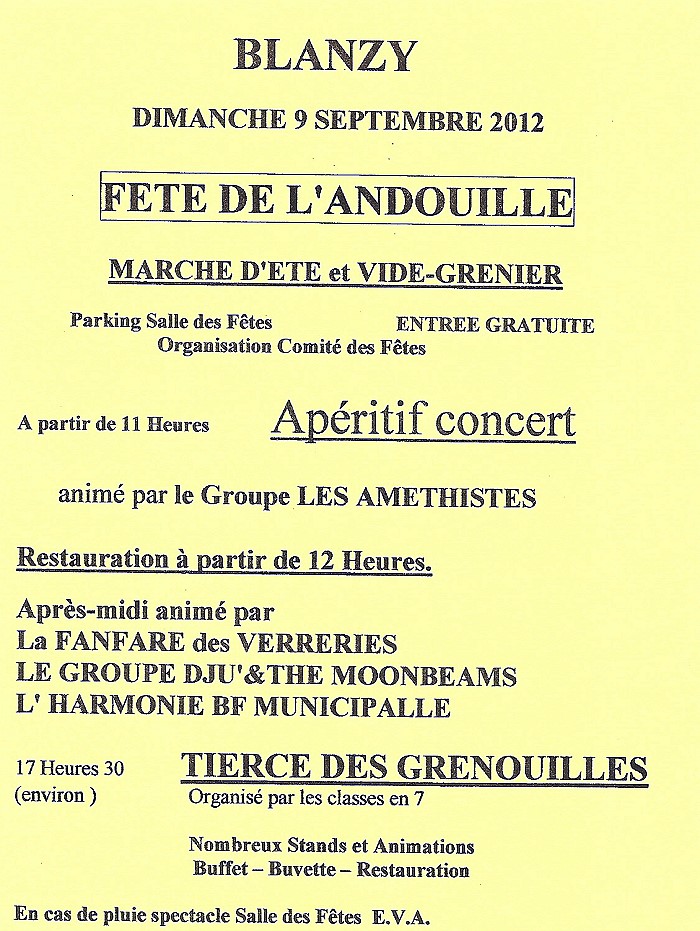 Fête de l'andouille, marché d'été et vide grenier ce dimanche 9 septembre 2012