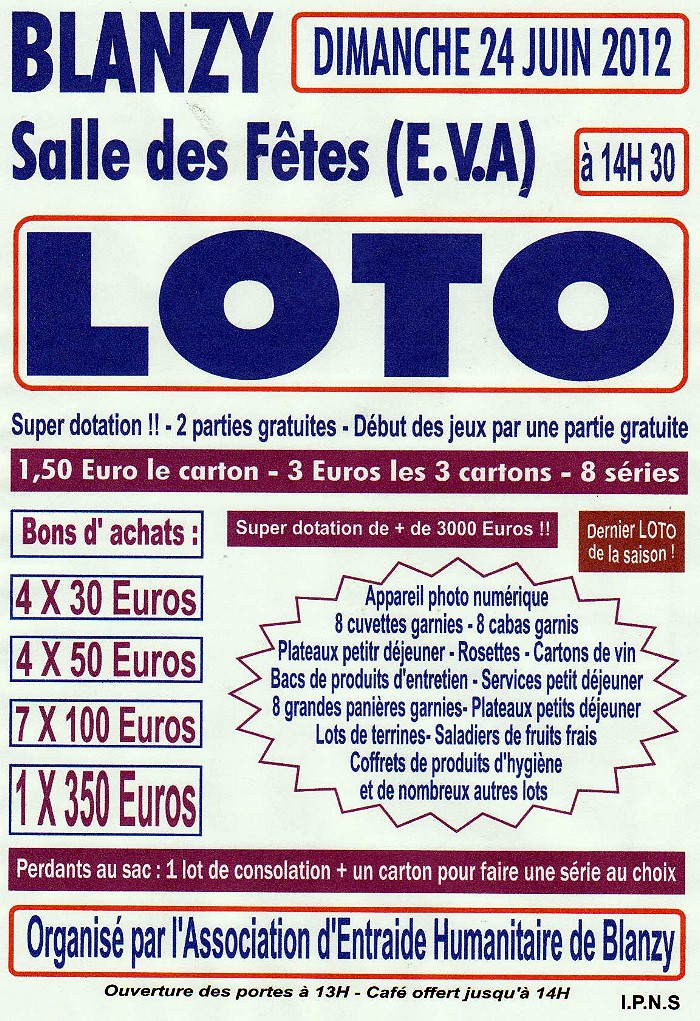 Dernier loto de la saison, ce dimanche 24 juin 2012