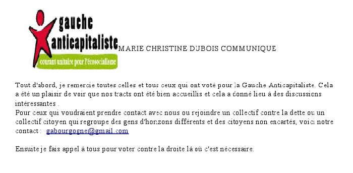 Marie-Christine Dubois (Gauche Anticapitaliste) communique