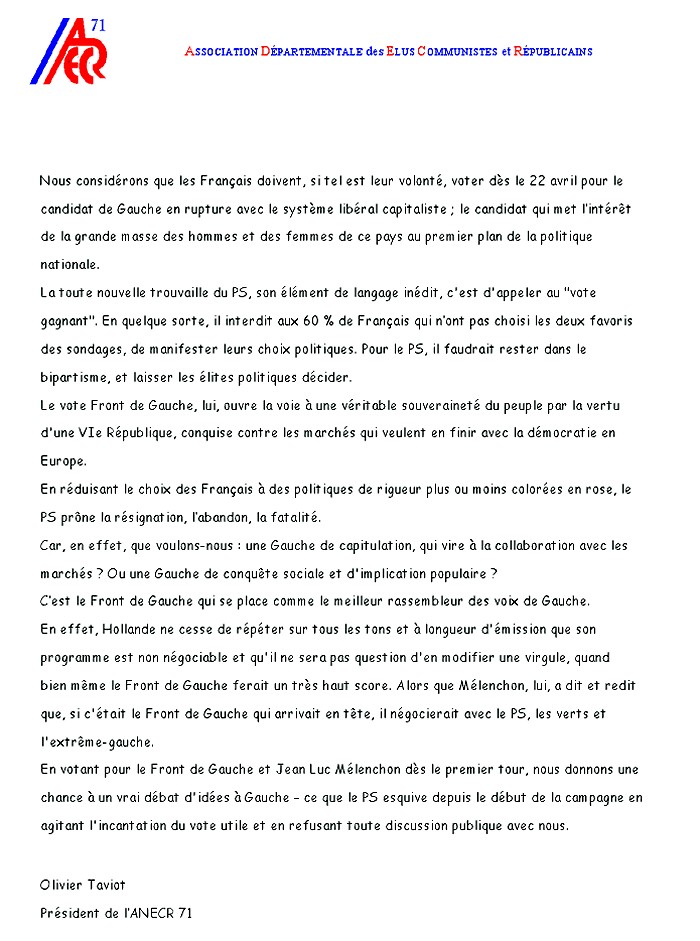L'appel d' élus et responsables du PS de Saône-et-Loire