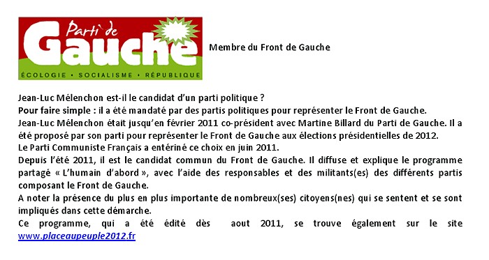 Les précisions du Pari de Gauche à propos de Jean-Luc Mélenchon