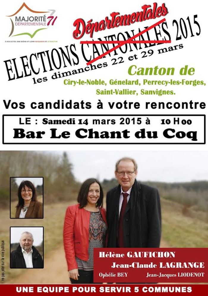 Les candidats de la majorité départementale à votre rencontre le mercredi 18 mars 2015