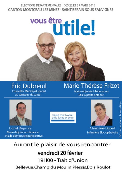 Réunion publique des candidats de la majorité départementale : le 4 mars 2015 !
