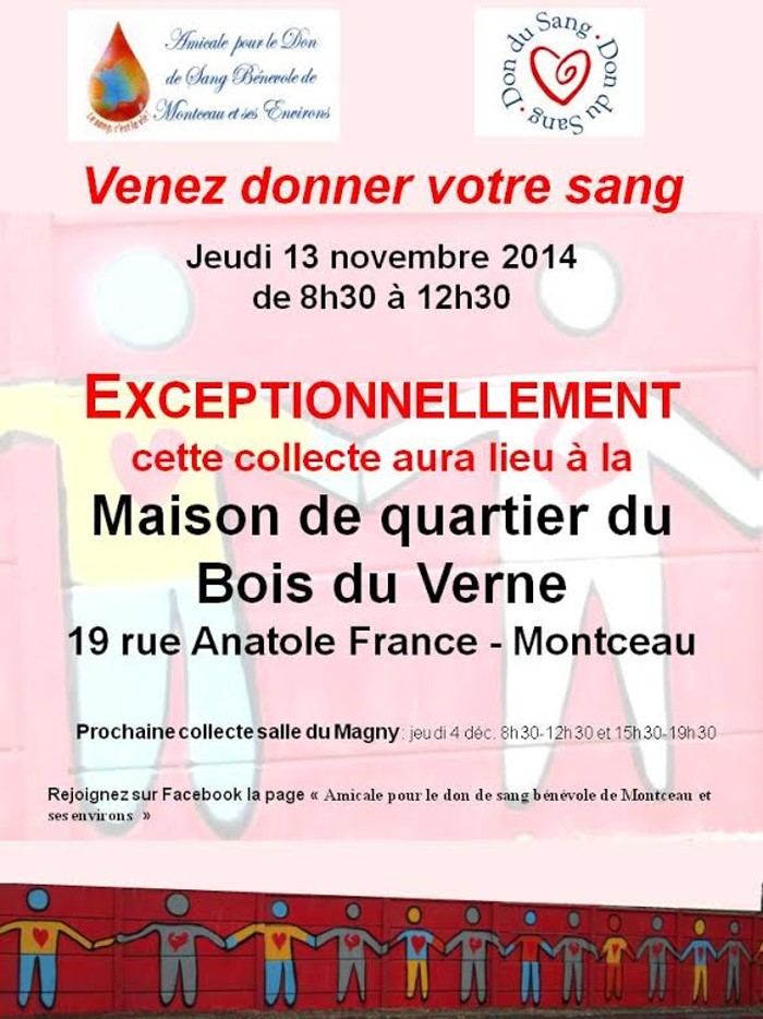 Prochaine collecte, le jeudi 13 novembre 2014 (Maison du quartier du Bois du Verne)