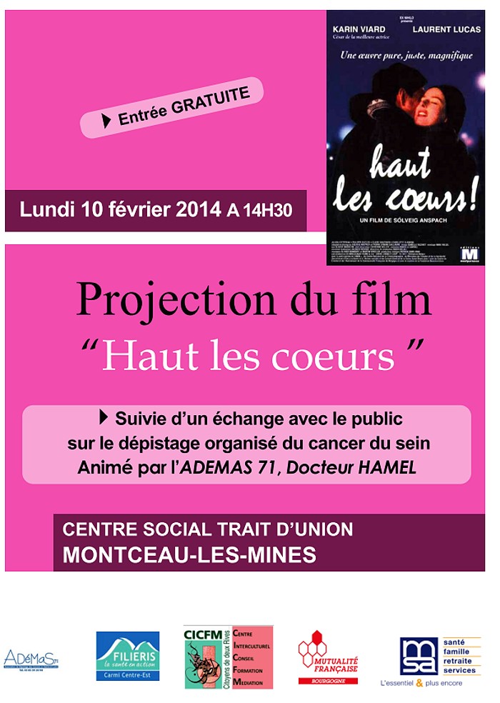 Projection (gratuite) du film "Haut les coeurs" au Trait d'Union, le lundi 10 février 2014