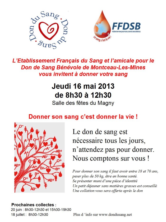 Collecte ce jeudi 16 mai 2013 à la salle des fêtes du Magny