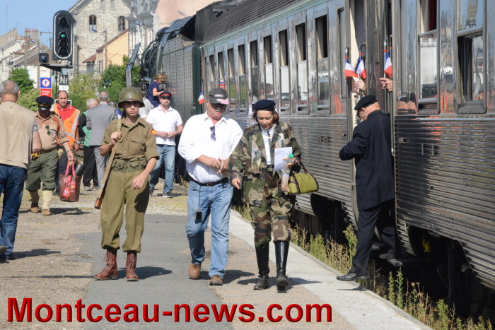 LIbération de Montceau : arrivée à la gare, défilé dans les rues, visite du camp militaire…