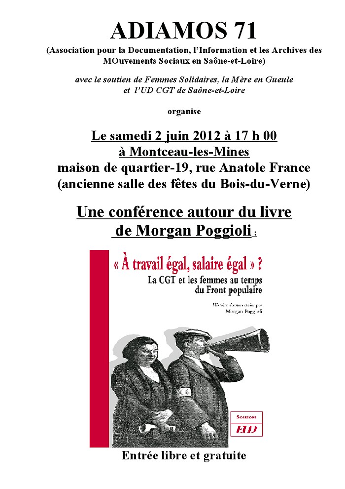 Conférence à Montceau-les-Mines, le samedi 2 juin 2012,autour du livre "A travail égal, salaire égal"