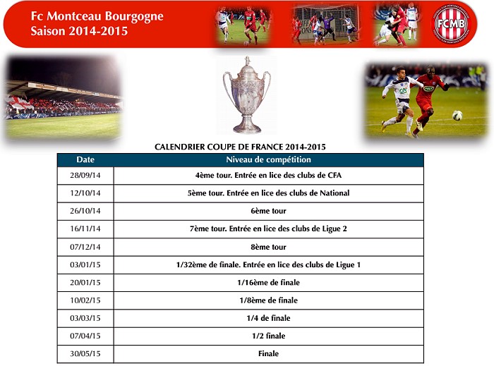 Le calendrier de la saison et de la Coupe de France 2013/2014