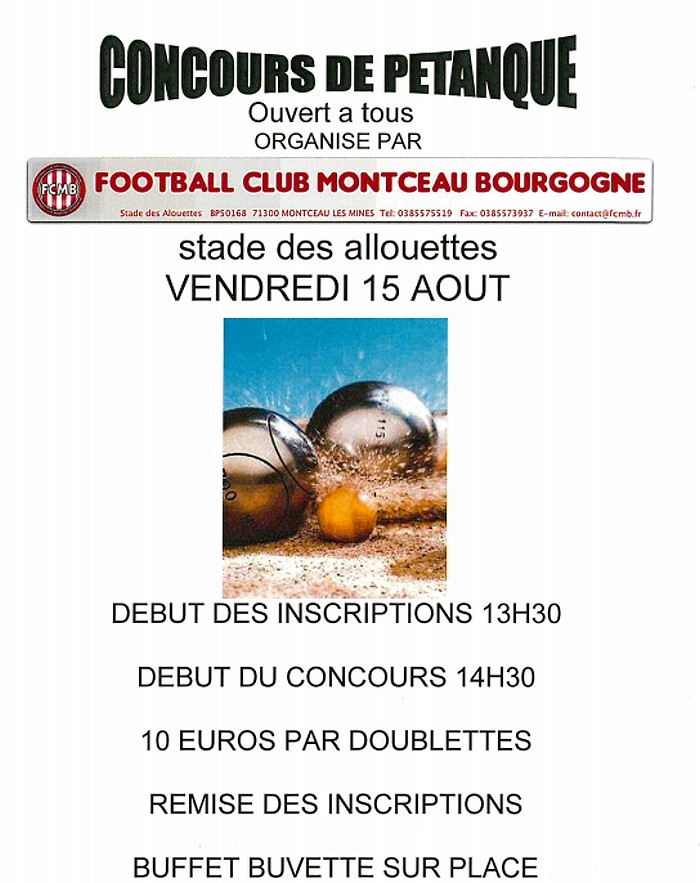 Concours de pétanque, ouvert à tous, le vendredi 15 août 2014