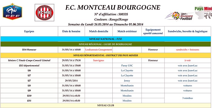 Les rencontres du week-end prochain !