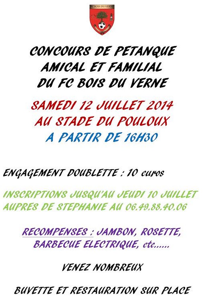 Concours de pétanque familial, le samedi 12 juillet 2014