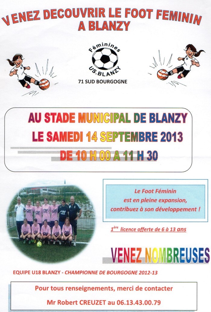 Venez découvrir le foot féminin, samedi 14 septembre 2013