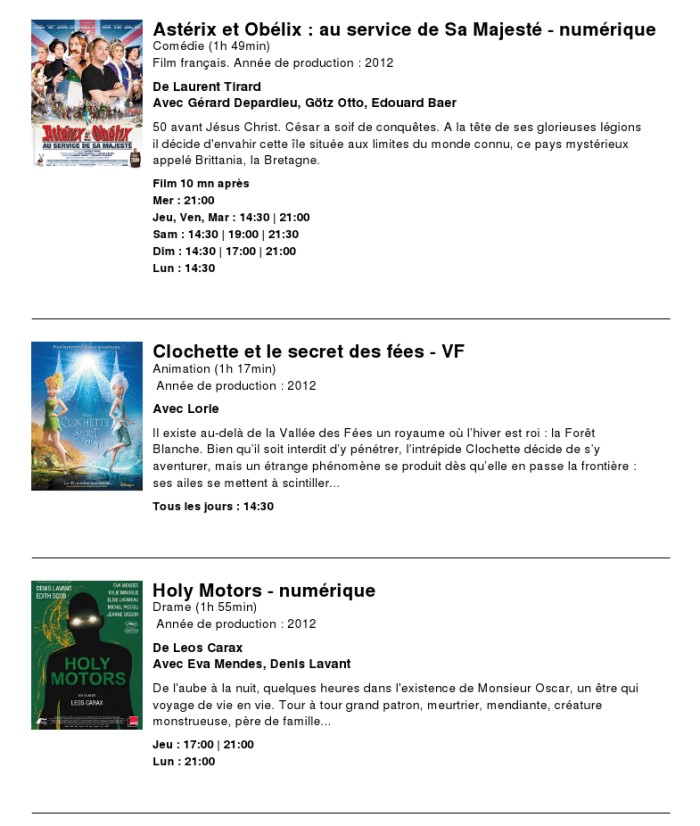 A l'affiche, cette semaine (du 31 octobre au 6 novembre 2012)