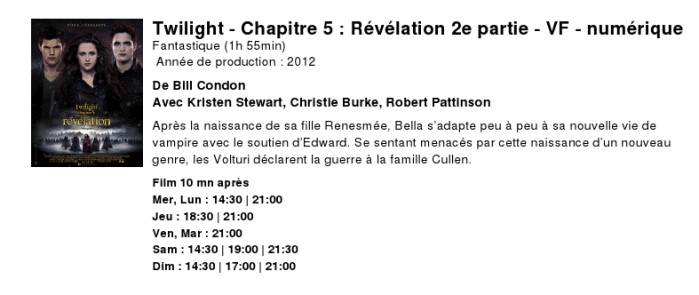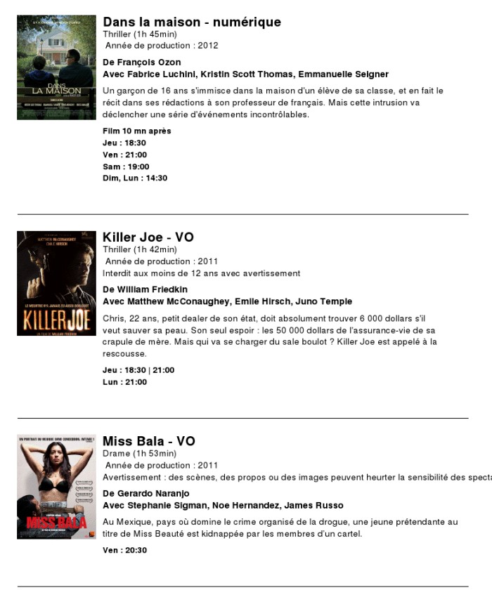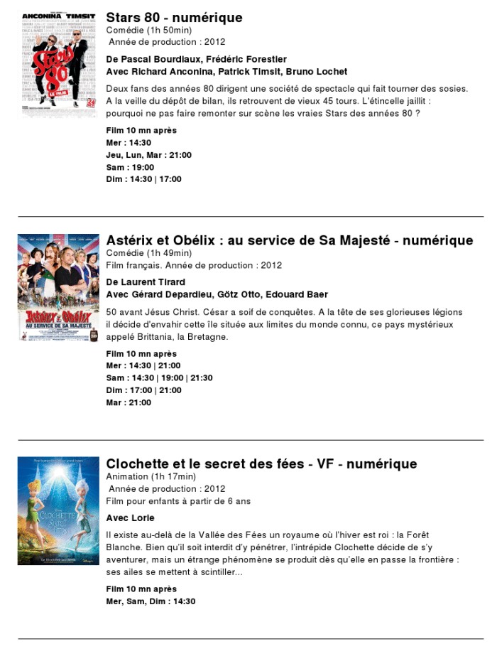 A l'affiche, cette semaine (du 14 au 20 novembre 2012)
