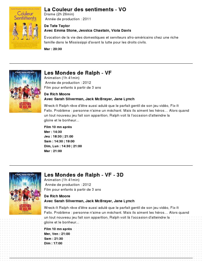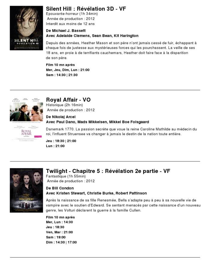 A l'affiche, cette semaine (du 5 AU 11 décembre 2012)