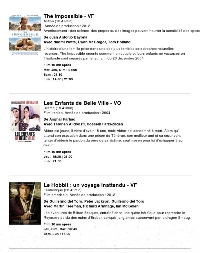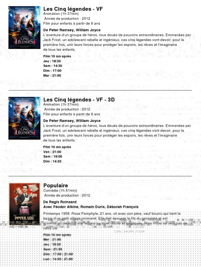A l'affiche, cette semaine (du 12 AU 18 décembre 2012)