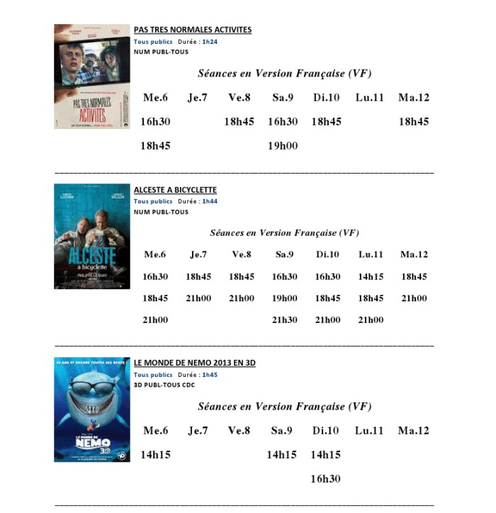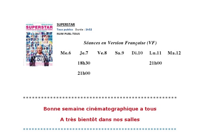 A l'affiche, cette semaine (du 6 au 12 février 2013)