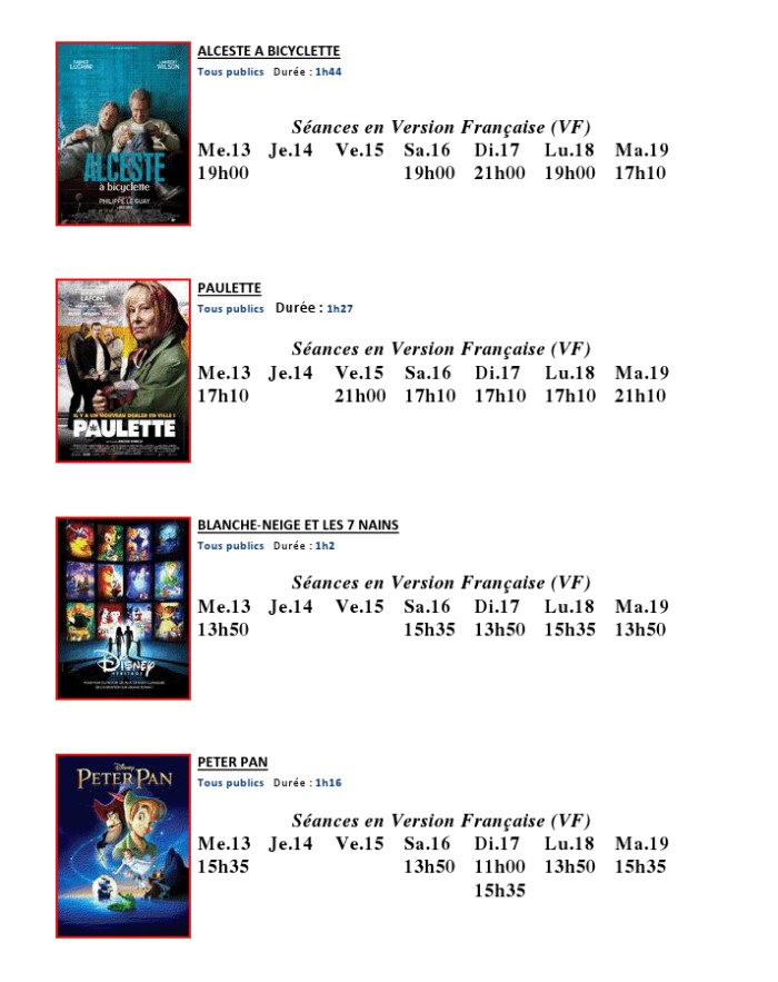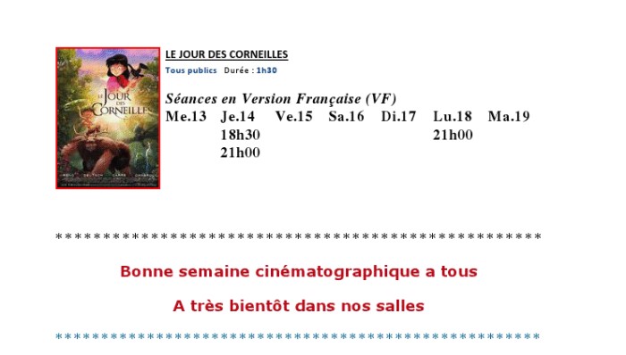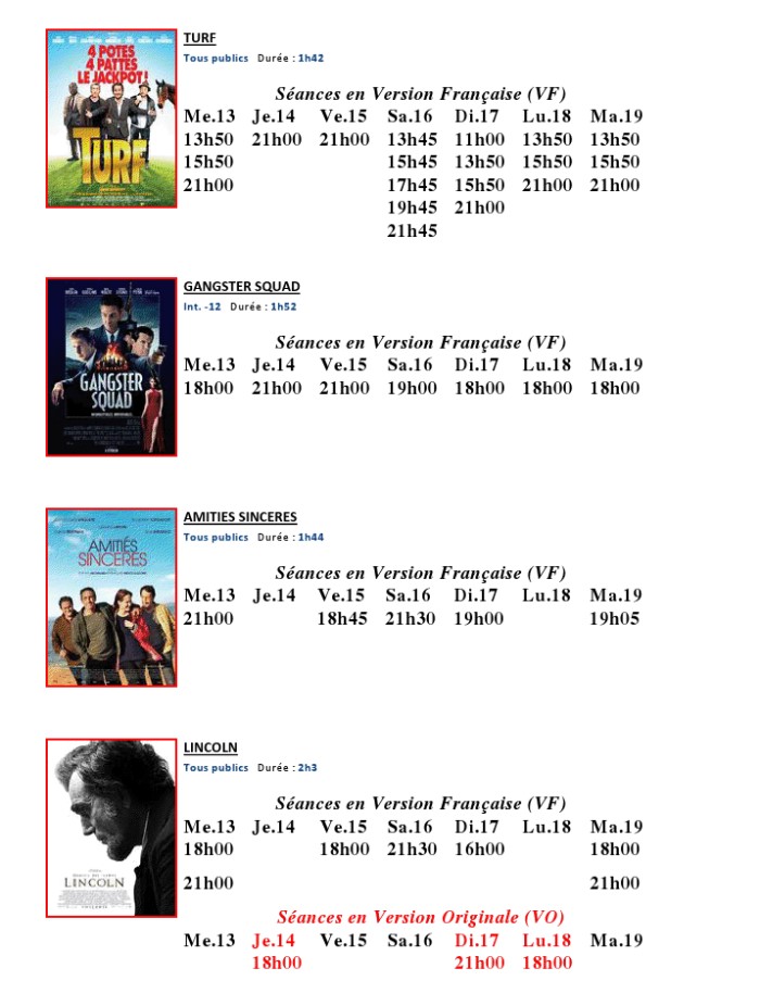 A l'affiche, cette semaine (du 13 au 19 février 2013)