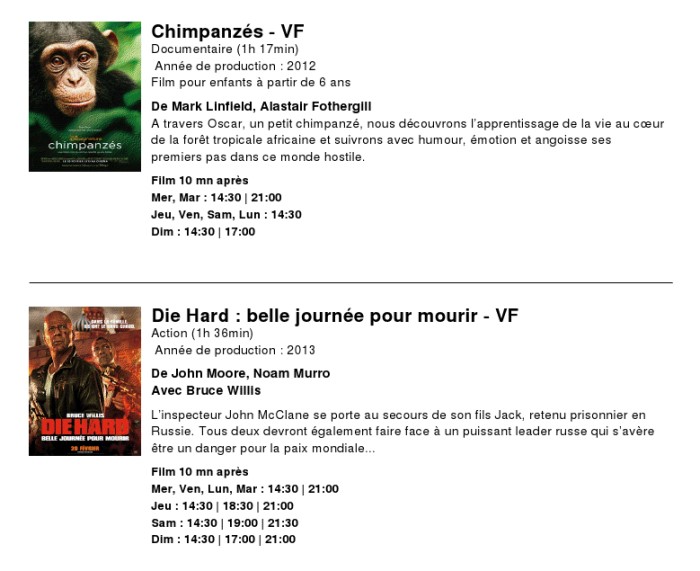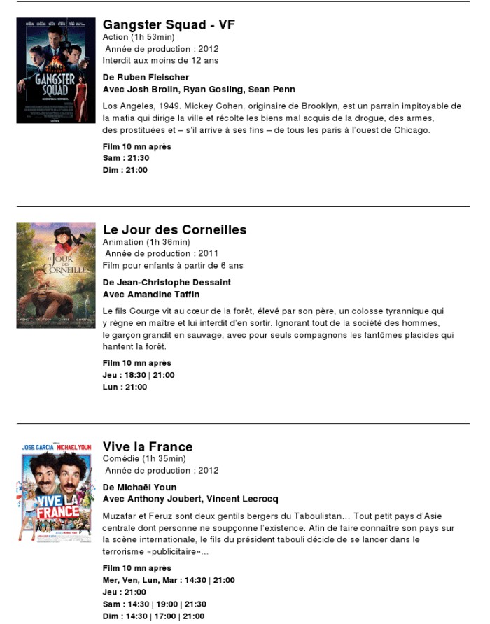 A l'affiche, cette semaine (du 20 au 26 février 2013)